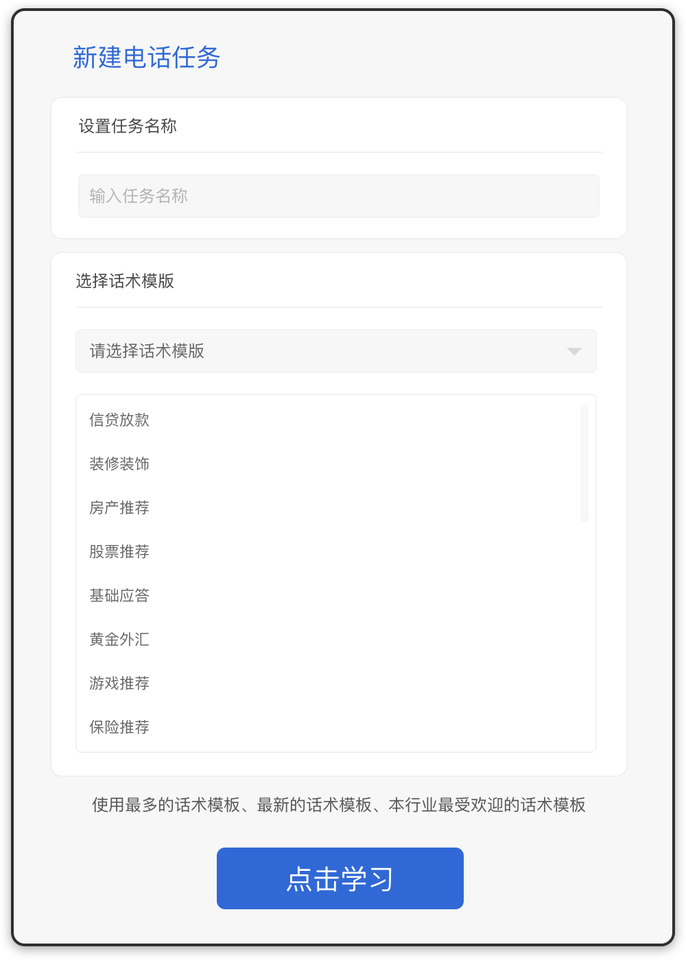 您的电销机器人使用完全通过此账号云端进行,比如提交号码、设置拨打任务、提交人群筛选需求、查看客户沟通情况等等